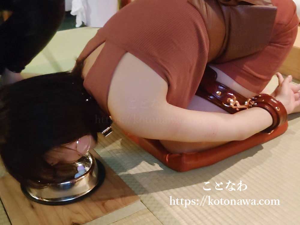 リーベセーレ使用例。拘束され犬のように餌を与えられる雌犬。